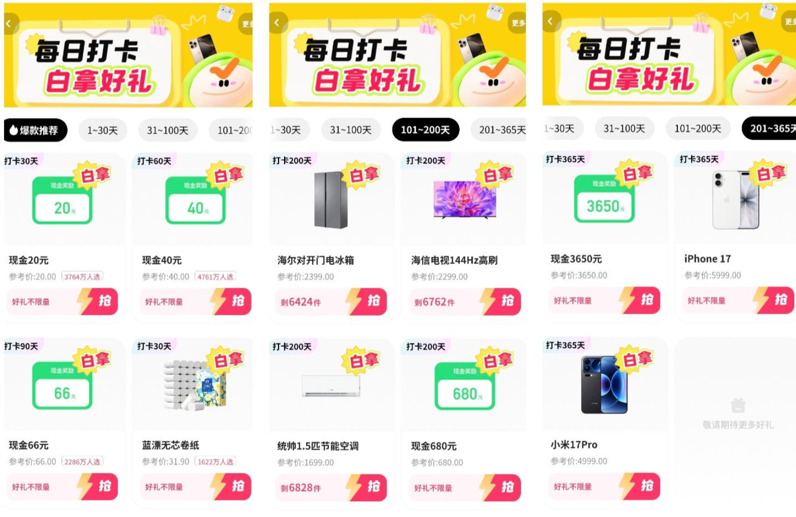 日常刷快手的小伙伴注意啦!平台推出的签到免费拿活动,不用花一分钱,只需每天花几十秒完成签到,就能累计领取现金、金币、优惠券,甚至有机会解锁手机、家电等大额实物奖励。不管是休闲刷视频的普通用户,还是想额外赚点零花钱的小伙伴,都能轻松参与。下面就为大家详细拆解活动福利和参与流程,帮你顺利薅到这份免费福利! 一、多重签到福利...